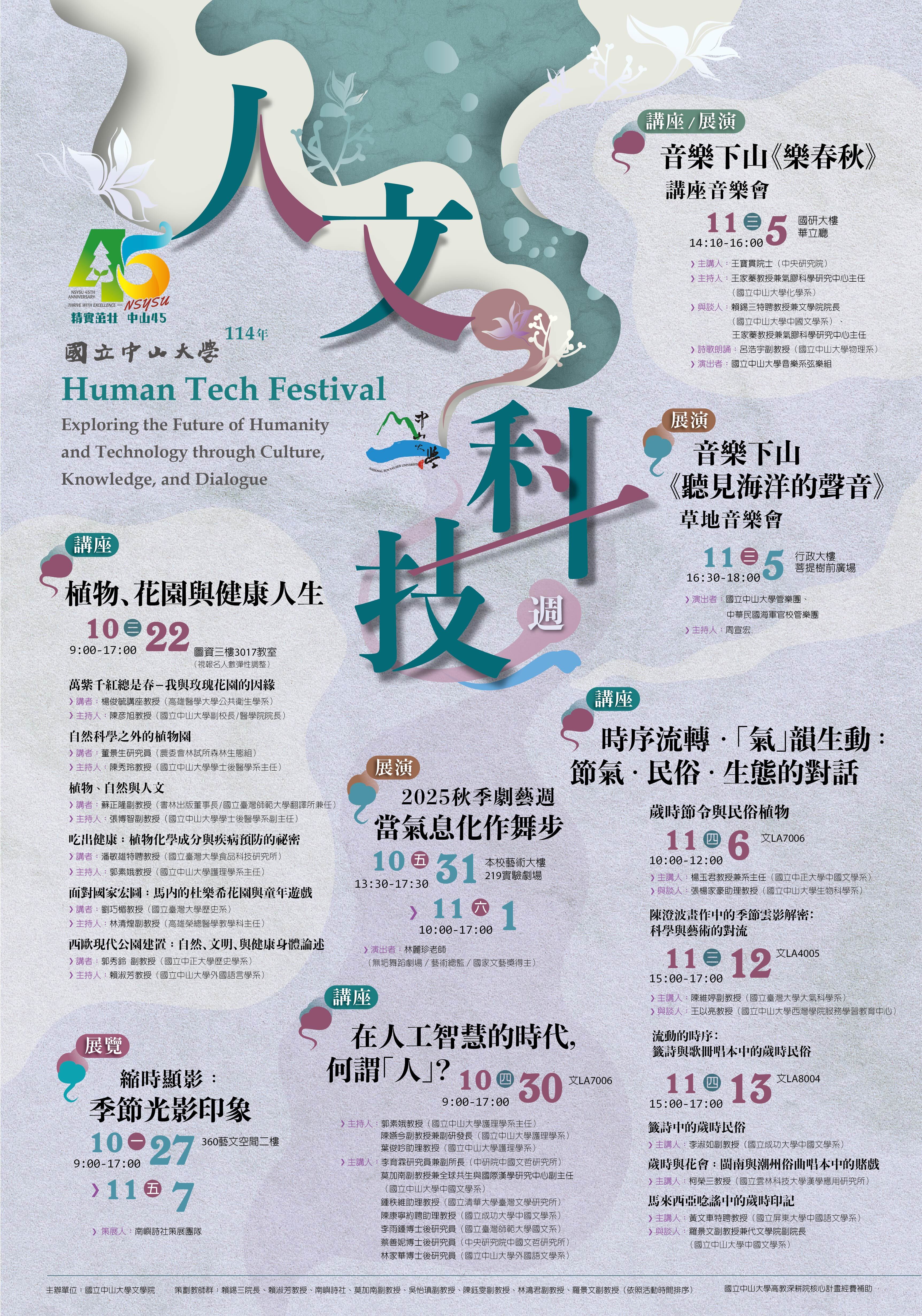 由文學院規劃、校方支持,「人文-科技週」是一場跨越人文與科技的盛會,誠摯邀請師生共襄盛舉。